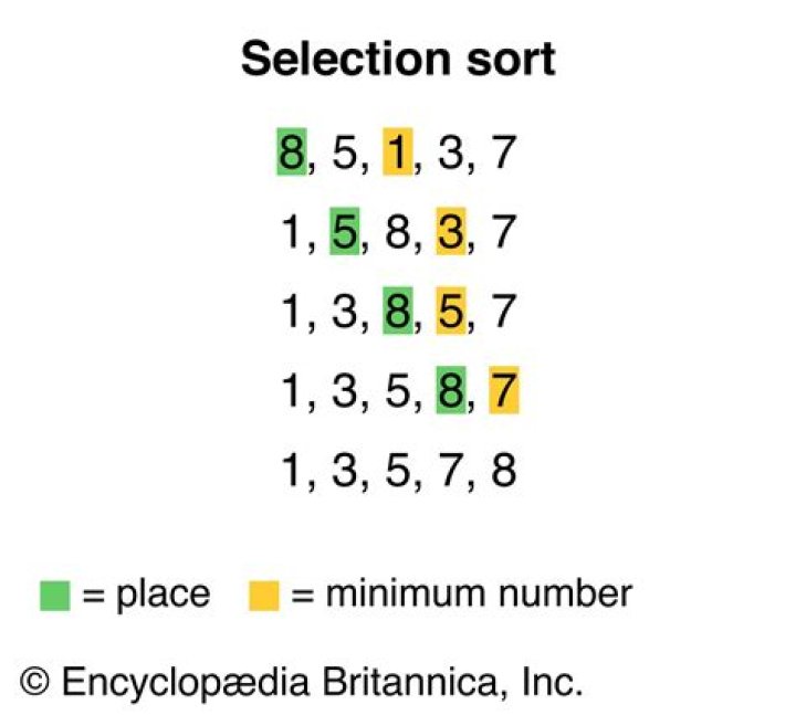 In computer science, selection sort is an in-place comparison sorting algorithm. It has an O(n2) time complexity, which makes it inefficient on large lists, and generally performs worse than the similar insertion sort.