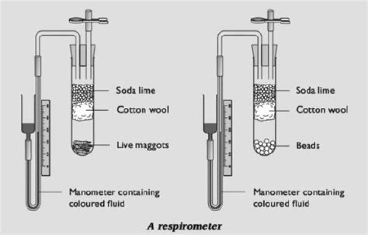 A respirometer is a piece of equipment that can be used to measure the rate of respiration by measuring the volume of oxygen taken in over a set period of time. … The higher the rate of respiration, the more the coloured liquid moves. The experiment has a control with no insect in order to compare results.