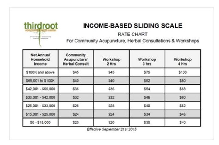 Sliding-scale fees are based on a client’s ability to pay, often determined by income and family size, derived from the Federal Poverty Guidelines. Sliding-scale fees can either be hourly or flat.