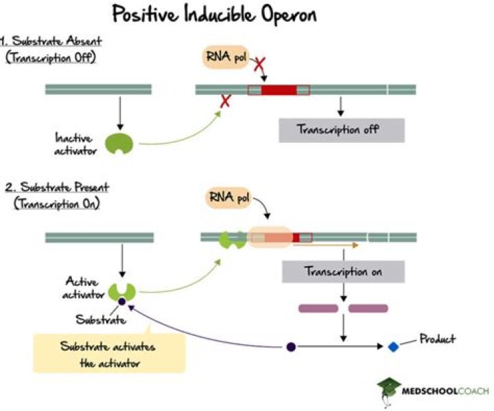 An inducible operon requires an inducer molecule to stimulate transcription either by inactivating a repressor protein in a negative inducible operon or by stimulating the activator protein in a positive inducible operon. … enhancers are DNA sequences that are the binding sites of transcriptional activator proteins.
