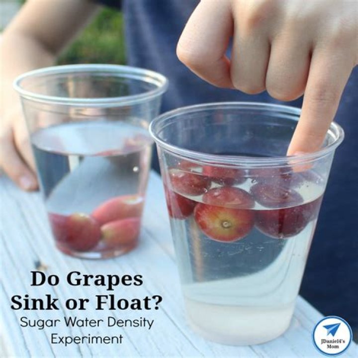 {I added about 8-10 TBS before our grape floated} Once you have enough sugar in the cup when you place the grape in it will float. Without the sugar in the water, the grape is denser and will sink. The sugar adds matter to the cup of water. This makes it denser than the grape which allows the grape to now float.Why do apples float and grapes sink?