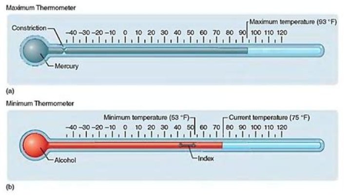 Class 7 Question There is a special thermometer called maximum minimum thermometer which automatically records the maximum and minimum temperatures of a day. Six’s thermometer is a regisetring thermometer which can record the minimum and maximum temperatures reached over a period of time, for example 24 hours.