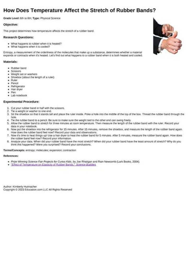 When a rubber band is stretched, entropy dictates that the rubber band will want to contract again. When the temperature is higher, the molecules are more excited, and want even more to be in a random state. This makes the rubber band easier to stretch out.Do rubber bands shrink when heated?