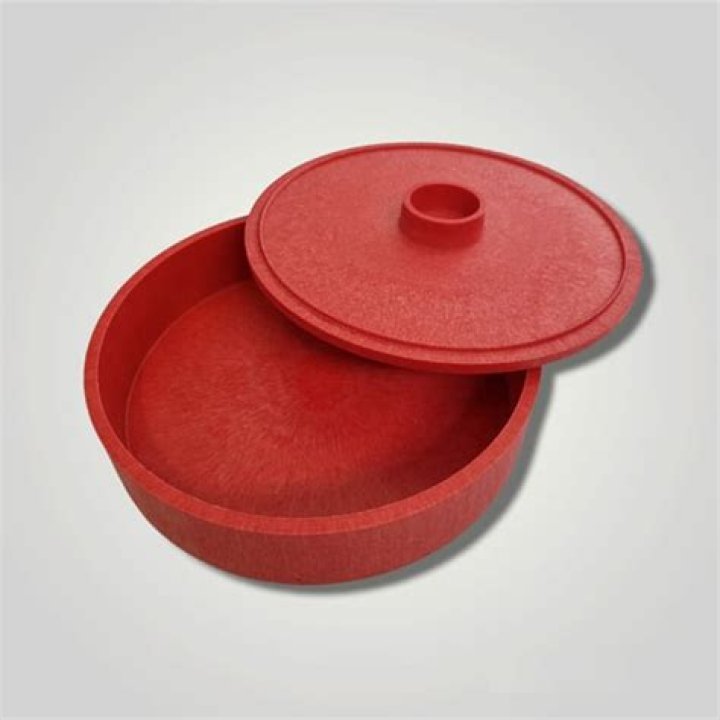 The tortilla warmers are made from a variety of materials, such as terra cotta, ceramic, a plastic composite, styrofoam, or a stone-like material formed into a rounded shape to easily stack tortillas after they are warmed or to use when heating the thin flatbreads in an oven or microwave.