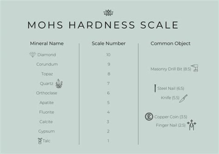 MineralMohs HardnessQuartz7Topaz8Corundum9Diamond10