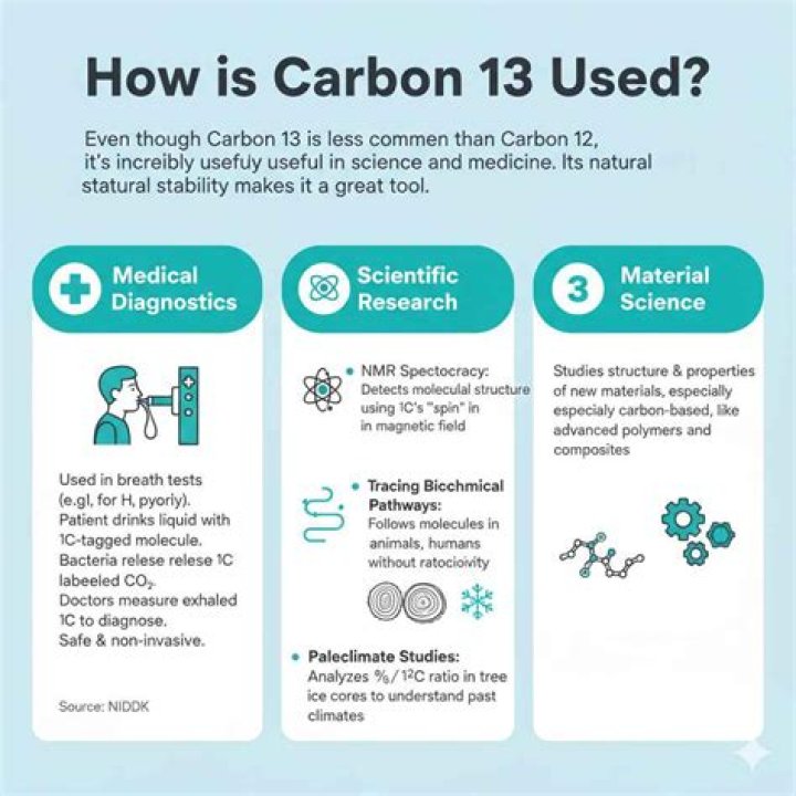 C-13 is used for instance in organic chemistry research, studies into molecular structures, metabolism, food labeling, air pollution and climate change. C-13 is also used in breath tests to determine the presence of the helicobacter pylori bacteria which causes stomach ulcer.