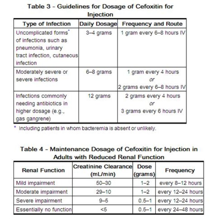 Cefoxitin injection comes as a powder to be mixed with liquid to be injected intravenously (into a vein). Cefoxitin injection is also available as a premixed product to be injected intravenously. It is usually given every six or eight hours.