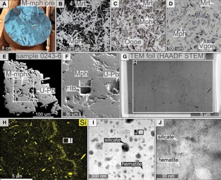 Large ore bodies of hematite are usually of sedimentary origin, and it is widely distributed in sedimentary rocks as a cement. High grade ore bodies can be found in metamorphic rocks as a result of contact metasomatism. Hematite is also as an accessory mineral in igneous rocks.