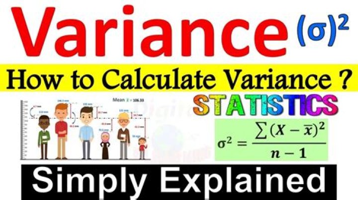 In statistics, variance measures variability from the average or mean. It is calculated by taking the differences between each number in the data set and the mean, then squaring the differences to make them positive, and finally dividing the sum of the squares by the number of values in the data set.