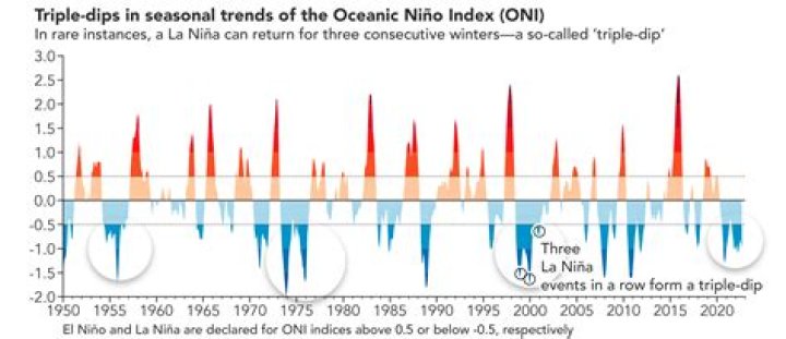 Previous La Ninas occurred during the winter of 2020-2021 and 2017-2018, and an El Nino developed in 2018-2019. When neither climate pattern is present, ENSO is neutral and does not influence global climate patterns.
