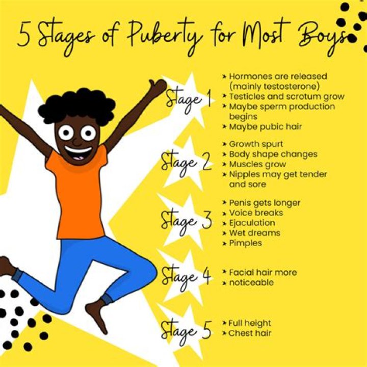 Stage 5: The final phase Boys finish their growth and physical development during this stage. Many may not develop facial hair until this step in the process. Most boys finish growing by age 17. Don’t hesitate to talk to your pediatrician when you have concerns about your son’s progress through puberty, says Dr.