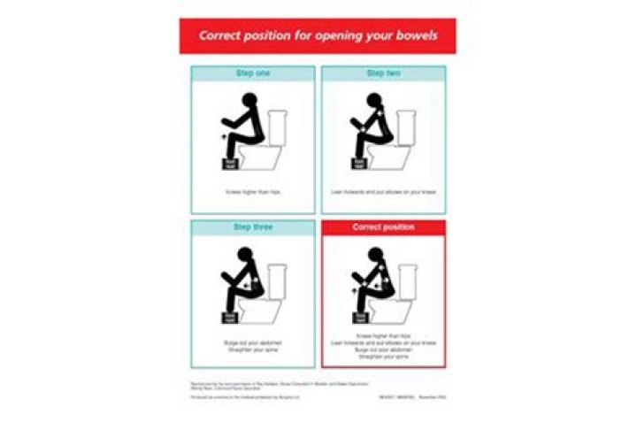 sitting with your knees higher than your hips (use a foot stool or other flat, stable object if necessary) lean forward and put your elbows on your knees. relax and bulge out your stomach. straighten your spine.Can your intestines fall out if you sit on the toilet for too long?