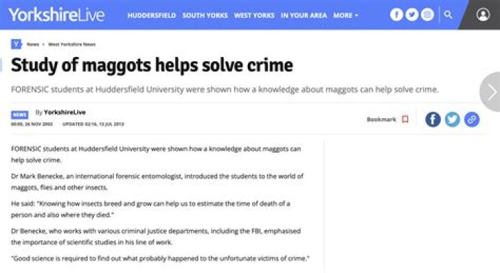 The presence of flies or maggots on a dead body can give researchers a sense of when a person or animal died, and whether the body was moved from one location to another, said Jeff Tomberlin, a forensic entomologist at Texas A&M University in College Station.