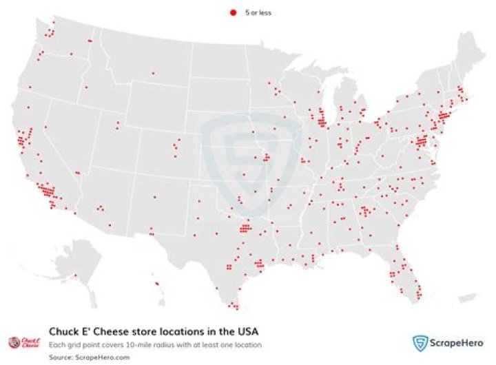 As of June 2020, Chuck E. Cheese operates 612 corporate and franchise stores, as well as 122 Peter Piper Pizza restaurants. They are located in 47 states across the United States and in 16 countries and territories around the world.