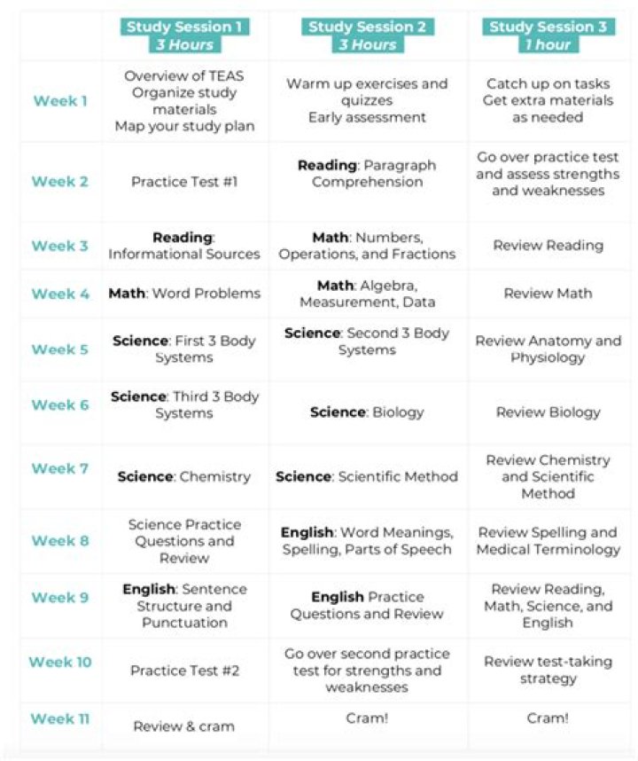 How many hours study for TEAS