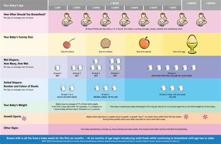 By 7 months old, your baby can eat 8 to 12 tablespoons (about 1/2 to 1 cup) of solid food as “snacks” in between three to five feedings of 6 to 8 ounces of breast milk or formula each (24 to 32 ounces total daily).