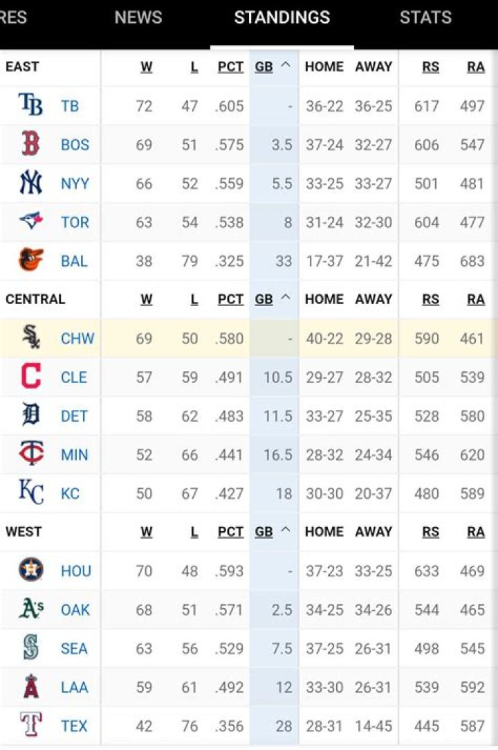 AL EASTW-L2Red Sox W92-703Yankees W92-704Blue Jays91-715Orioles52-110