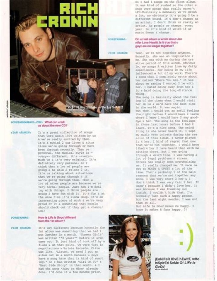Rich was dating Hollywood hottie Jennifer Love Hewitt and the band had a then-unknown backup dancer named Kevin Federline, who, Cronin said, had such bad B.O. they made him ride in the back of the tour bus!