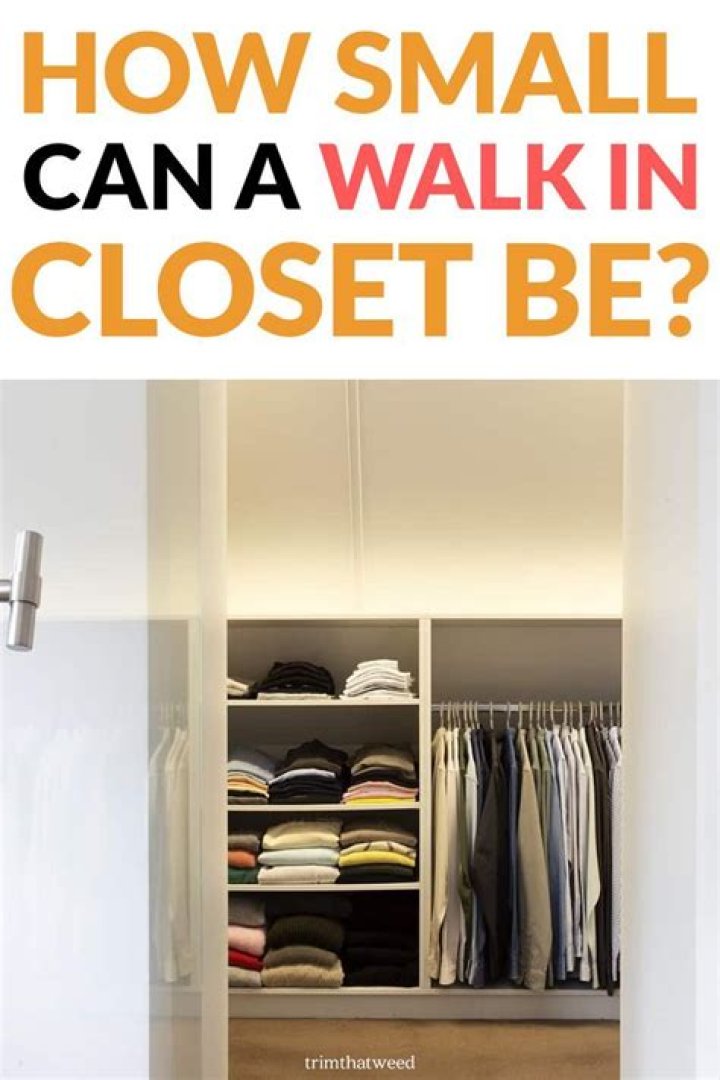 What is the smallest size a walk-in closet can be? A walk-in closet needs to be at least 4ft wide by 4ft deep – large enough to install at least three hanging rails in a U-shape.