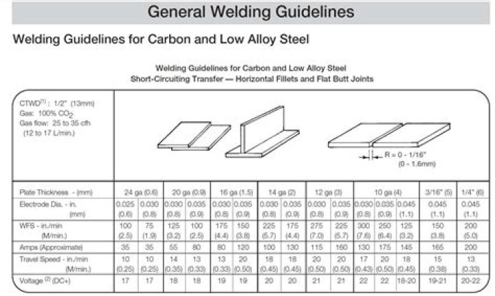 Welds ideally should be 1.5 times the thickness of the material being welded. So if you are welding two pieces of 1/4″ steel together then the weld would be . 25 x 1.5 = . 375 or 3/8″ of an inch.