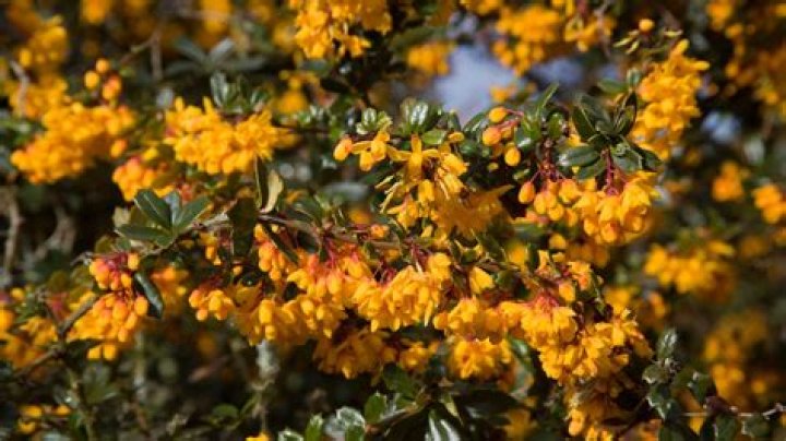 Berberis darwinii, native to Chile and Argentina, is upright, evergreen and has small, spiny leaves, yellow flowers followed by blue berries. Berberis thunbergii is the Japanese barberry, with brilliant red autumn foliage. Birds like the barberry fruits, so they can be a good addition to a wildlife border.