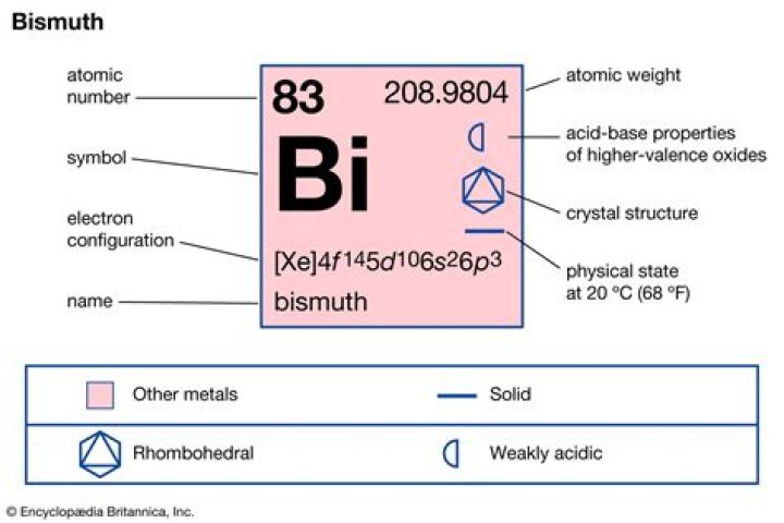 Bismuth is a chemical element with symbol Bi and atomic number 83. Classified as a post-transition metal, Bismuth is a solid at room temperature.