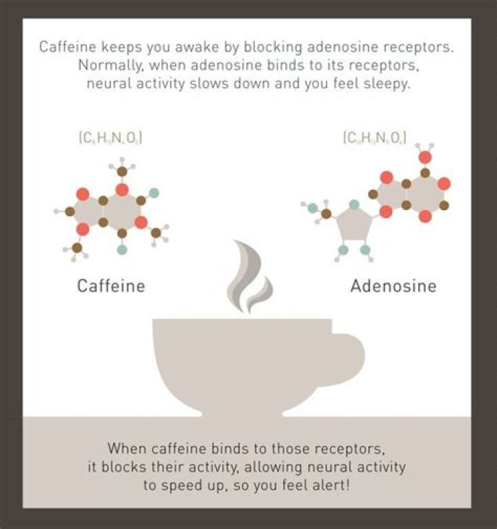 Caffeine acts as an adenosine-receptor antagonist. This means that it binds to these same receptors, but without reducing neural activity.