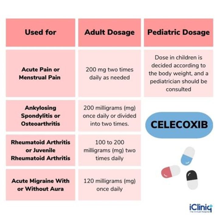 400 mg as a first dose followed by 200 mg once or twice daily as required. You may take Celebrex for up to 5 days.