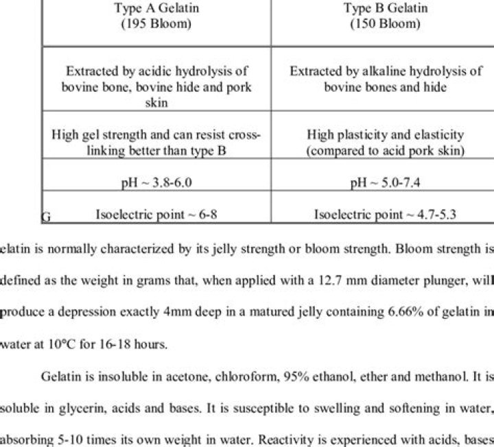 Gelatin is derived either by partial acid (gelatin type A) or alkaline hydrolysis (gelatin type B) of native collagen that is found in animal collagen from skins, cartilage, bones, and tendons. The surface of gelatin is negatively charged at higher pH (pH 9) and positively charged at lower pH (pH 5).