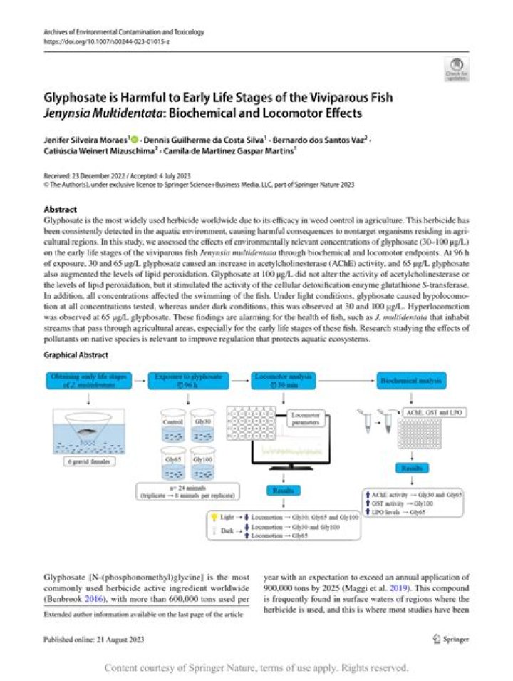 As mentioned, glyphosate has high solubility in an aquatic environment. Some studies say that 50% of glyphosate in natural waters dissipates by water flow and decomposition in a few days to 2 weeks [19, 20, 21].