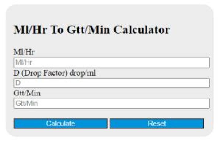 Here’s a tip: when the IV tubing is microdrip, 60 gtts/mL, the drops per min will be the same as the mL per hour. For example, you have 500 mL to infuse over 12 hours with a microdrip set. The total volume (500 mL) divided by the total time in hours (12) equals 41.6, rounded to 42 mL per hour.
