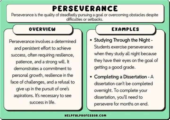 People who persevere may want to give up, but they keep going. Perseverance is often associated with other qualities that are thought to be essential for achieving success, like patience and a willingness to work hard. But persevering is more than working hard—it’s continuing to work hard even after failing.What is a persevere person?