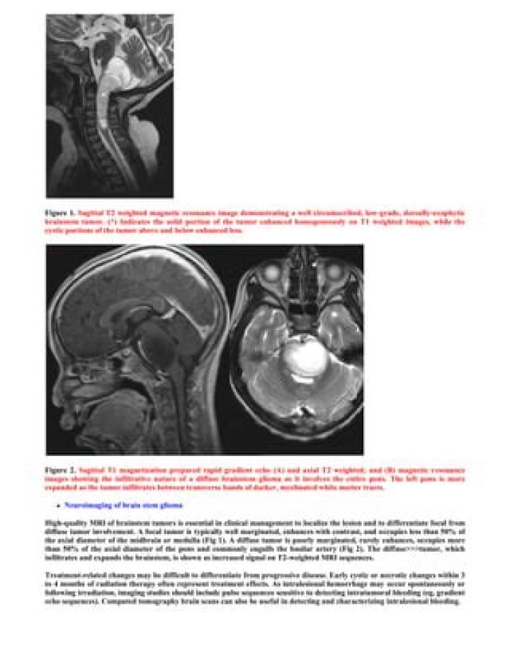 Brainstem Tumors A type of brainstem glioma growing backward out of the brainstem (called dorsal exophytic gliomas) is often a good candidate for surgical resection (removal). In these cases, at least a part of the tumor can be removed.