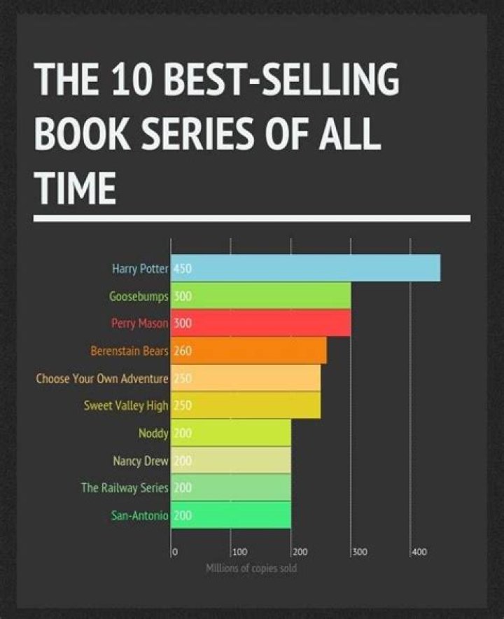 AuthorMin. estimated salesNumber of booksSidney Sheldon370 million21J. K. Rowling500 million15Gilbert Patten125 million209Dr. Seuss100 million44