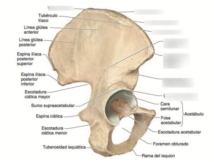 m. Hueso plano que conecta el sacro con el fémur y une así el tronco a la extremidad inferior. Se compone de tres partes: ilion izquierdo, pubis y huesos independientes unidos en el adulto en la cavidad acetabular por el cartílago trirradiado formando un solo hueso.