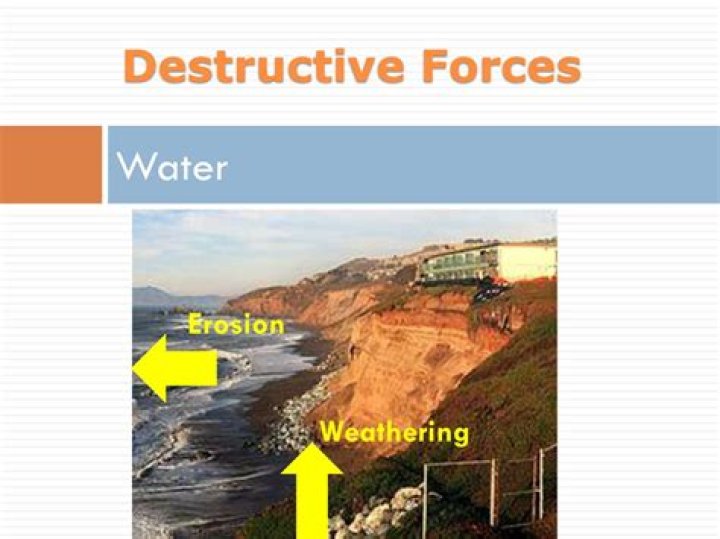 Mostly, landslides are an example of destructive forces because they cause a lot of damage to the structure of the earth; however, in some cases, landslides also help in demonstrating constructive forces in action because they help to form folding mountains by folding and compressing a layer of rocks over another.What are all the destructive forces?