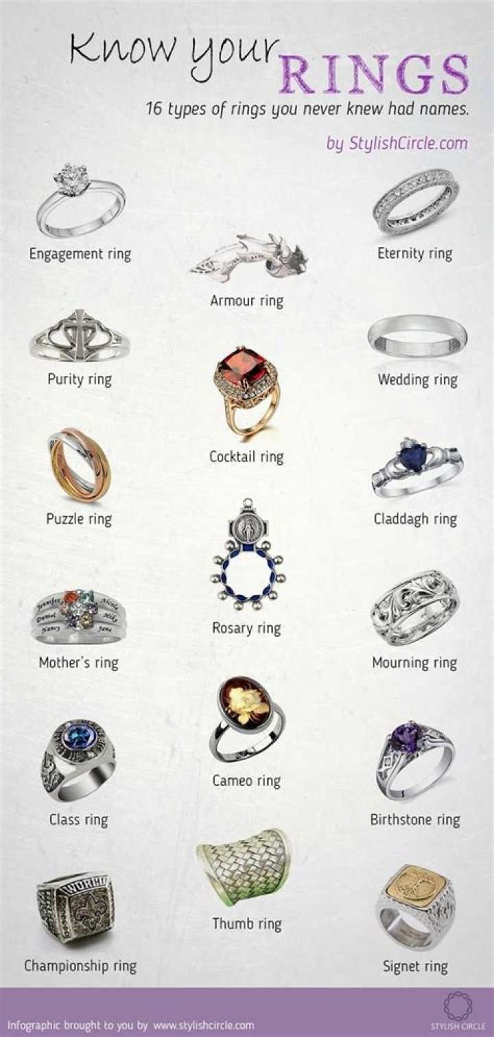 So, there you have it, the four main types of rings that mark the stages in your relationship. Of these, engagement and wedding rings are considered the most important.How do ladies wear rings?