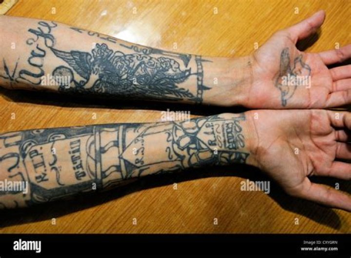 Gang tattoos mark a person as part of a street gang or a prison gang; they symbolize membership and represent the wearer’s beliefs. Sometimes they also record acts of violence or even murder. Every gang has its own set of tattoos and markings.