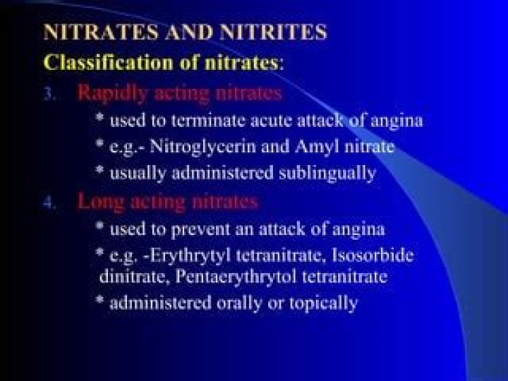 What meds have nitrates?- Nitroglycerin (such as Nitro-Dur, Nitrolingual, Nitrostat).