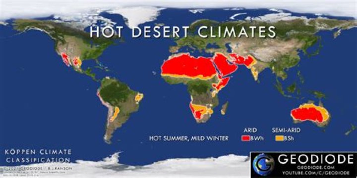 In hot and dry deserts, also known as arid deserts, the temperatures are warm and dry year-round. Some famous arid deserts include the Sahara Desert that covers much of the African continent and the Mojave Desert located in the southwest of the United States. Semi-arid deserts are a bit cooler than hot and dry deserts.