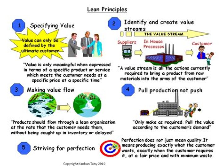 According to Womack and Jones, there are five key lean principles: value, value stream, flow, pull, and perfection.