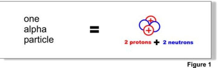 An alpha particle is identical to a helium atom that has been stripped of its two electrons; thus, an alpha particle contains two protons and two neutrons. Because an alpha particle has no electrons to balance the positive charge of the two protons, it has a charge of +2 and can be represented as He2+.