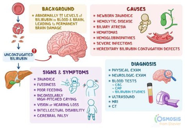 Kernicterus is a type of brain damage most often seen in babies. It’s caused by an extreme buildup of bilirubin in the brain. Bilirubin is a waste product that’s produced when your liver breaks down old red blood cells so your body can remove them. It’s normal for newborns to have high bilirubin levels.