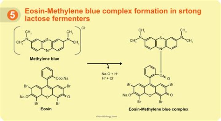 Eosin Y and methylene blue are pH indicator dyes which combine to form a dark purple precipitate at low pH; they also serve to inhibit the growth of most Gram positive organisms.