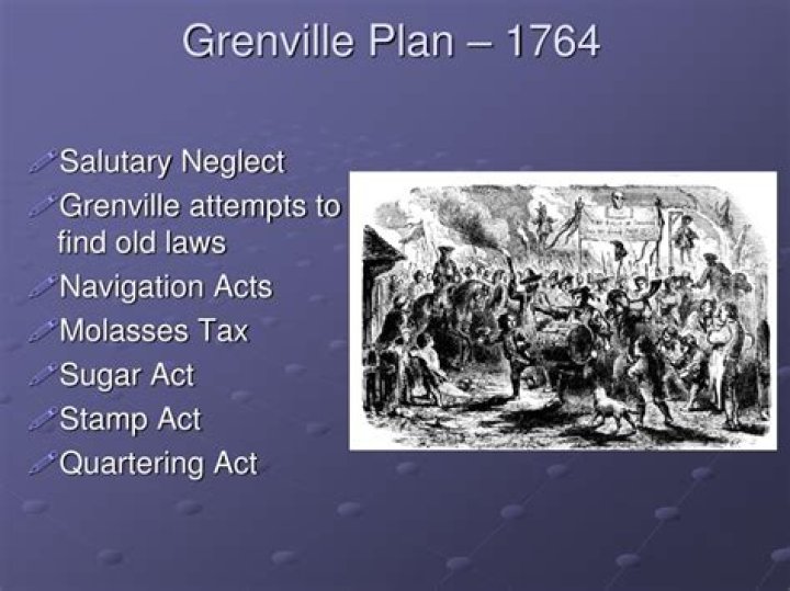 George Grenville was the British Prime Minister from 1763-1765. To obtain funds for Britain after the costly 7-Years War, in 1763 he ordered the Navy to enforce the unpopular Navigation Laws, and in 1764 he got Parliament to pass the Sugar Act, which increased duties on sugar imported from the West Indies.