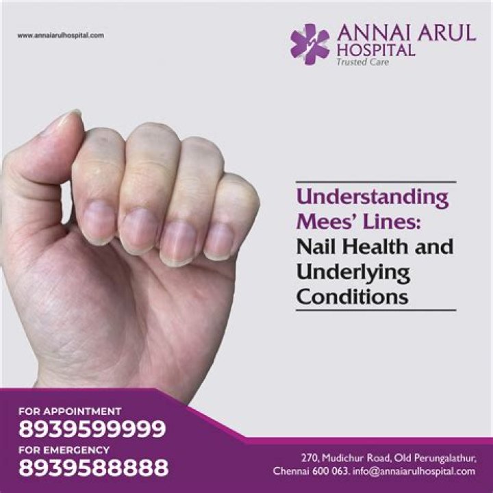 Mees lines are associated with arsenic poisoning, Hodgkin lymphoma, carcinoid tumours and chemotherapy (i.e., cyclophosphamide, vincristine and doxorubicin). Muehrcke lines result from liver disease, nephrotic syndrome, malnutrition and severe hypoalbuminemia (less than 20 g/L).Can stress cause Mees lines?