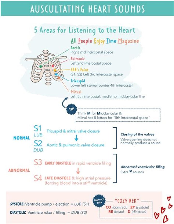 S1 – The first heart sound (lub) can be heard the loudest at the mitral area. This sound represents the closure of the mitral and tricuspid valves and is a low pitched, dull sound at the beginning of ventricular systole. S2 – The second heart sound (dub).