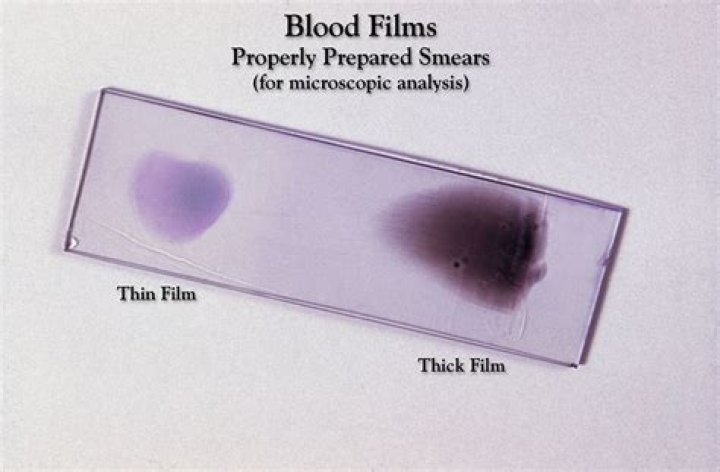 Thick and thin blood smears will let doctors know the percentage of red blood cells that are infected (parasite density) and what type of parasites are present. A thick blood smear is a drop of blood on a glass slide.