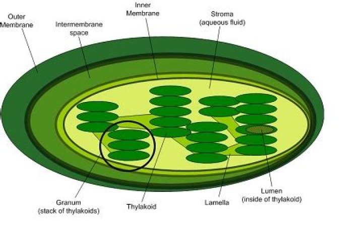 The green pigment chlorophyll is located within the thylakoid membrane, and the space between the thylakoid and the chloroplast membranes is called the stroma (Figure 3, Figure 4).