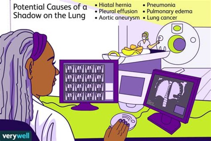 Lung cancer may appear as a shadow, with or without a well-defined nodule or mass. Benign tumors may similarly appear as a shadow or a spot. Tuberculosis is a bacterial infection of the lungs that often has no discernible features on X-rays in early disease but can cause the appearance of a shadow.